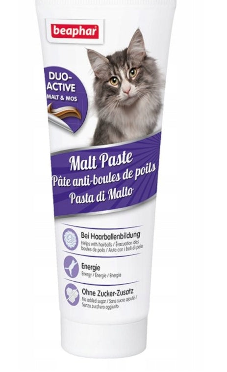 Dwufazowa pasta Beaphar wspiera organizm w pozbyciu się zjedzonej przez kota sierści. W pierwszej fazie produkt minimalizuje proces kształtowania się zalegającej sierści w zbite formacje, w drugiej gwarantuje właściwy jej przepływ w przewodzie pokarmowym.
