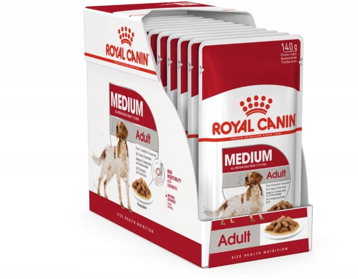 Karma w saszetkach dla psa Royal Canin Medium Adult to odpowiedź na potrzeby żywieniowe dorosłych osobników. Obecność w składzie tego produktu przeciwutleniaczy, redukuje objawy stresu oksydacyjnego. Doskonały smak karmy zachęci zwierzę do jej regularnego spożywania.