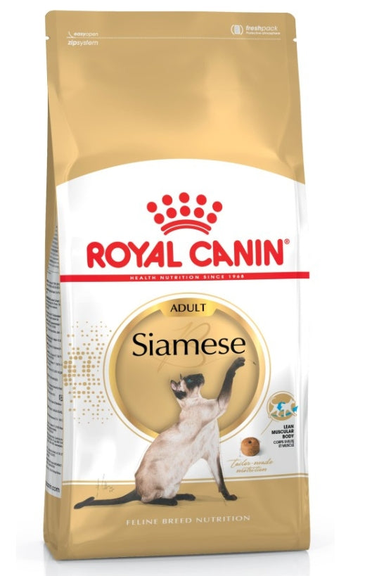 Karma ROYAL CANIN® Siamese Adult, opracowana specjalnie dla dorosłych kotów syjamskich, charakteryzuje się zwiększonym poziomem białka (38%), umiarkowanym poziomem tłuszczu (16%), dzięki czemu sprzyja utrzymaniu smukłej i muskularnej sylwetki. Dodatek L-karnityny sprzyja lepszemu wykorzystaniu rezerw tłuszczowych.